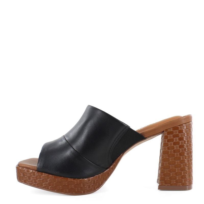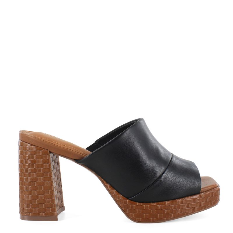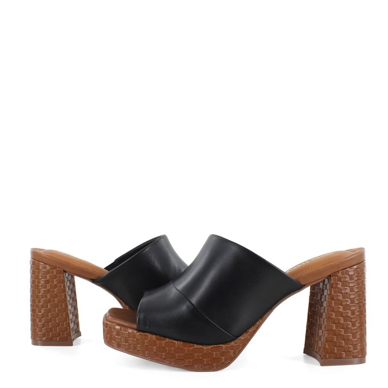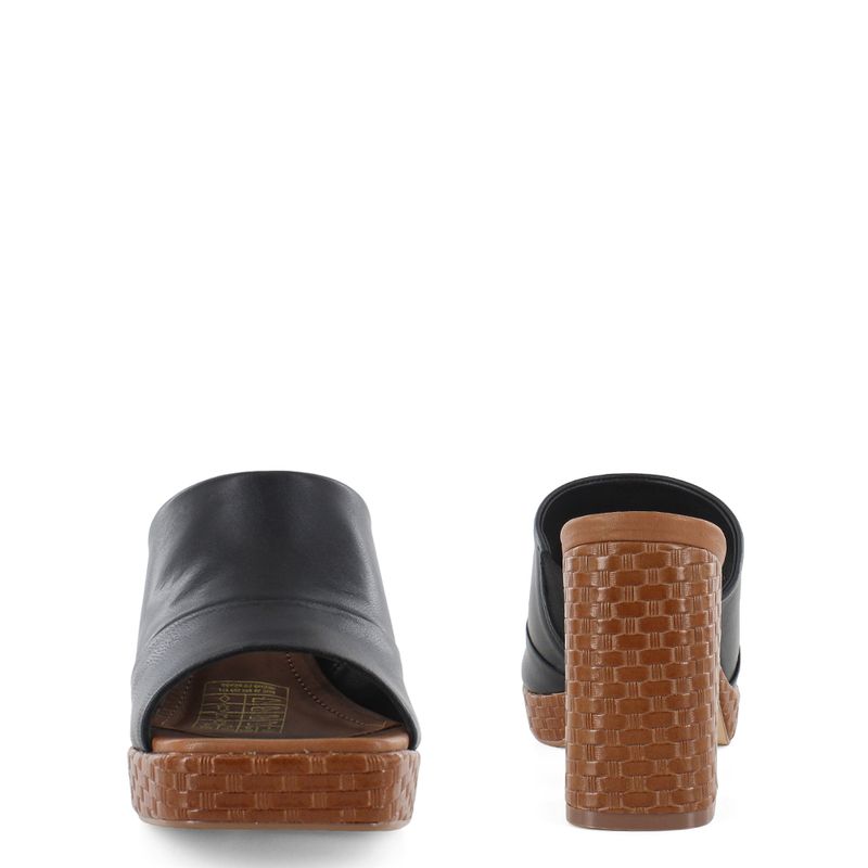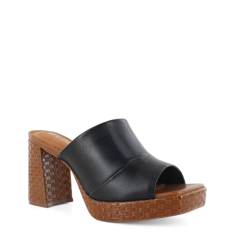 Presenta una tira ancha en color negro que proporciona un ajuste seguro. Lo que realmente la hace única es la plataforma y el tacón block, adornados con una textura que imita el trenzado. Este contraste de colores y materiales crea un calzado llamativo, pero fácil de combinar. Úsala para elevar looks casuales o darle un toque desenfadado a vestidos fluidos. Bruno Ferrini, lo mejor a tus pies.