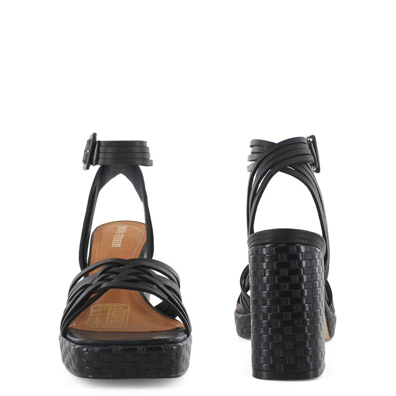 El tacón block y la ligera plataforma destacan por su acabado de textura, que le da un toque especial. Es el calzado perfecto para darle un toque sofisticado y boho-chic a cualquier look de día o de noche. Bruno Ferrini, lo mejor a tus pies.