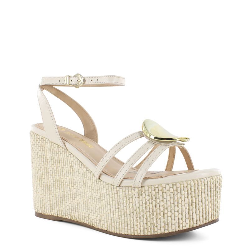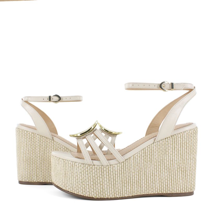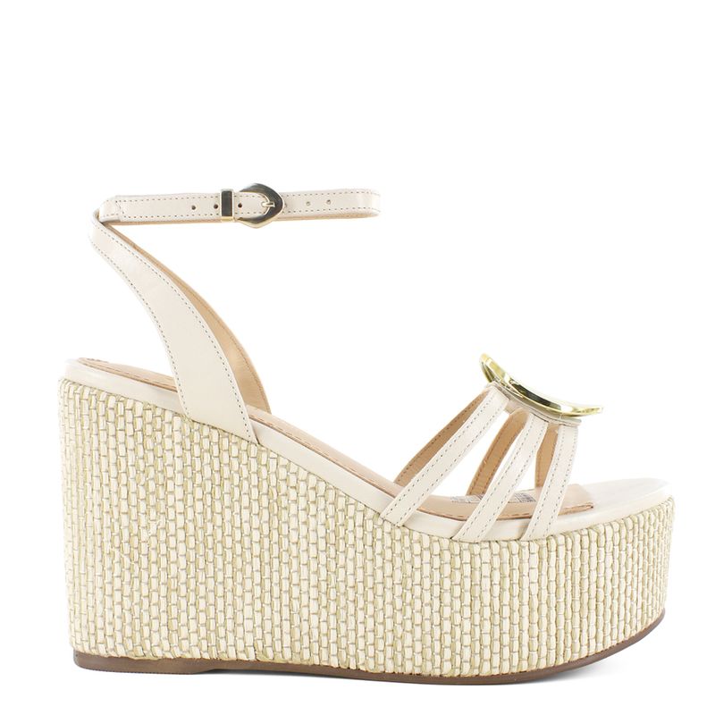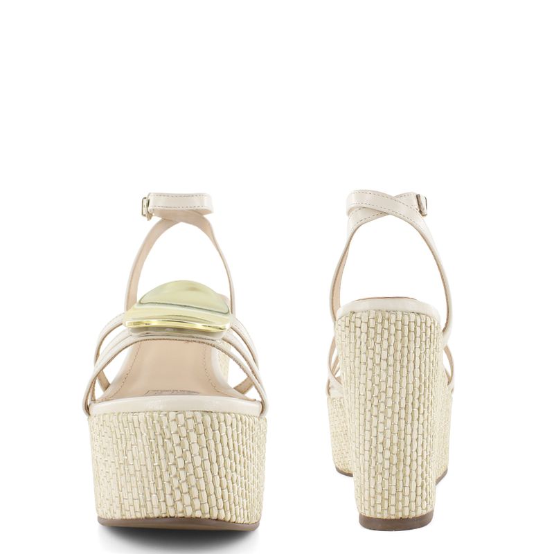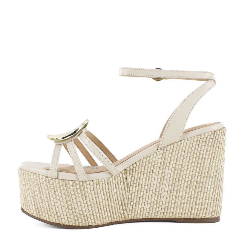 El diseño se completa con un elegante aplique metálico dorado que añade un toque de lujo sutil sobre el empeine. La pulsera al tobillo proporciona un ajuste seguro. Ideal para destacar en looks casuales de verano o para vestir eventos informales. Bruno Ferrini, lo mejor a tus pies.