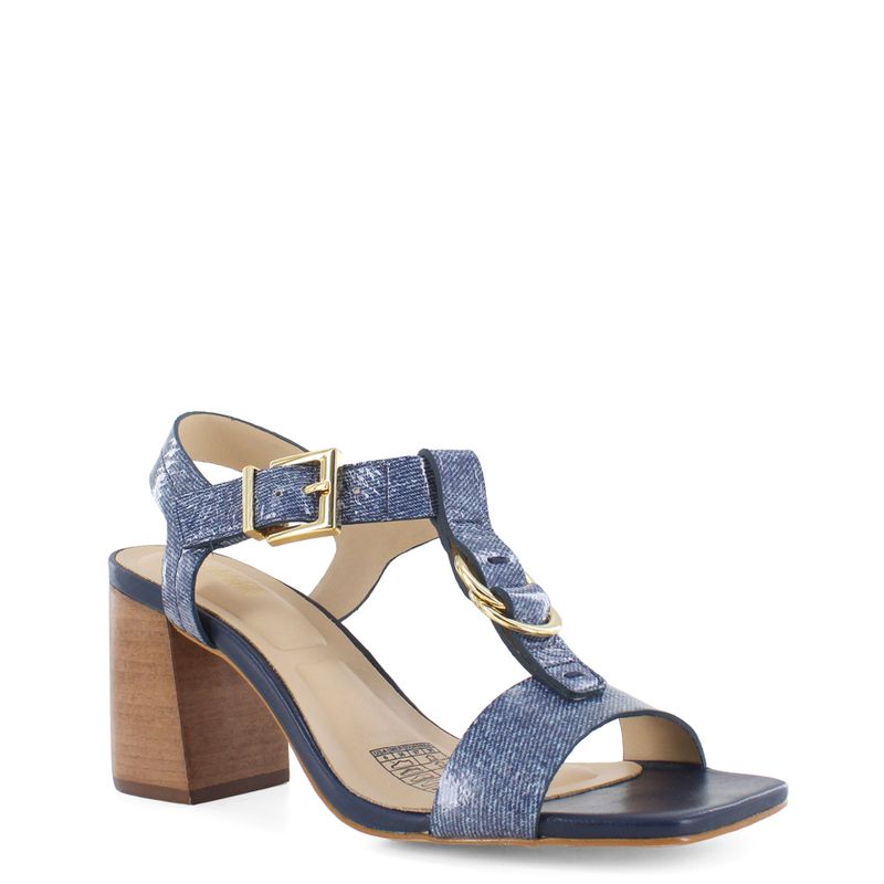 El diseño se define por una tira en forma de 'T' adornada con detalles dorados que le dan un aire sofisticado. El tacón block de altura cómoda, ofrece estabilidad al caminar. La pulsera de tobillo con una hebilla cuadrada dorada asegura el ajuste. Perfecta para elevar tus jeans o un vestido de verano. Bruno Ferrini, lo mejor a tus pies.