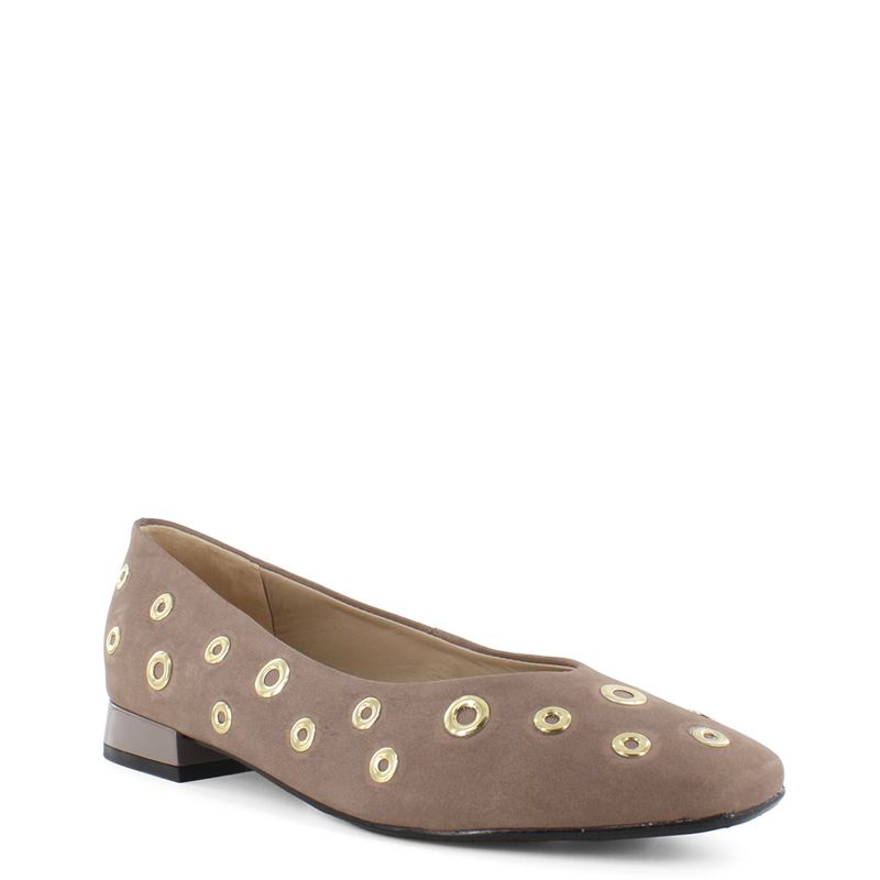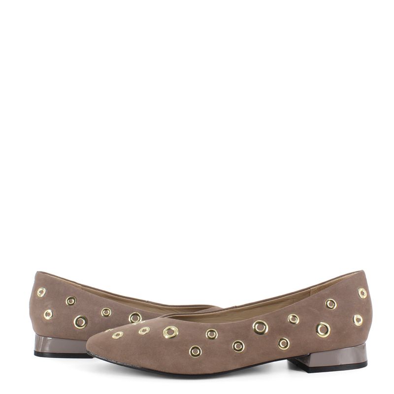 Luce cómoda y con estilo sin esfuerzo con estas balerinas en acabado nobuck. Perfectas para elevar un look casual. Su diseño con aros metálicos decorativos aportan un toque moderno y vanguardista. Combínalas con jeans, vestidos o faldas. Son un must esta temporada.
